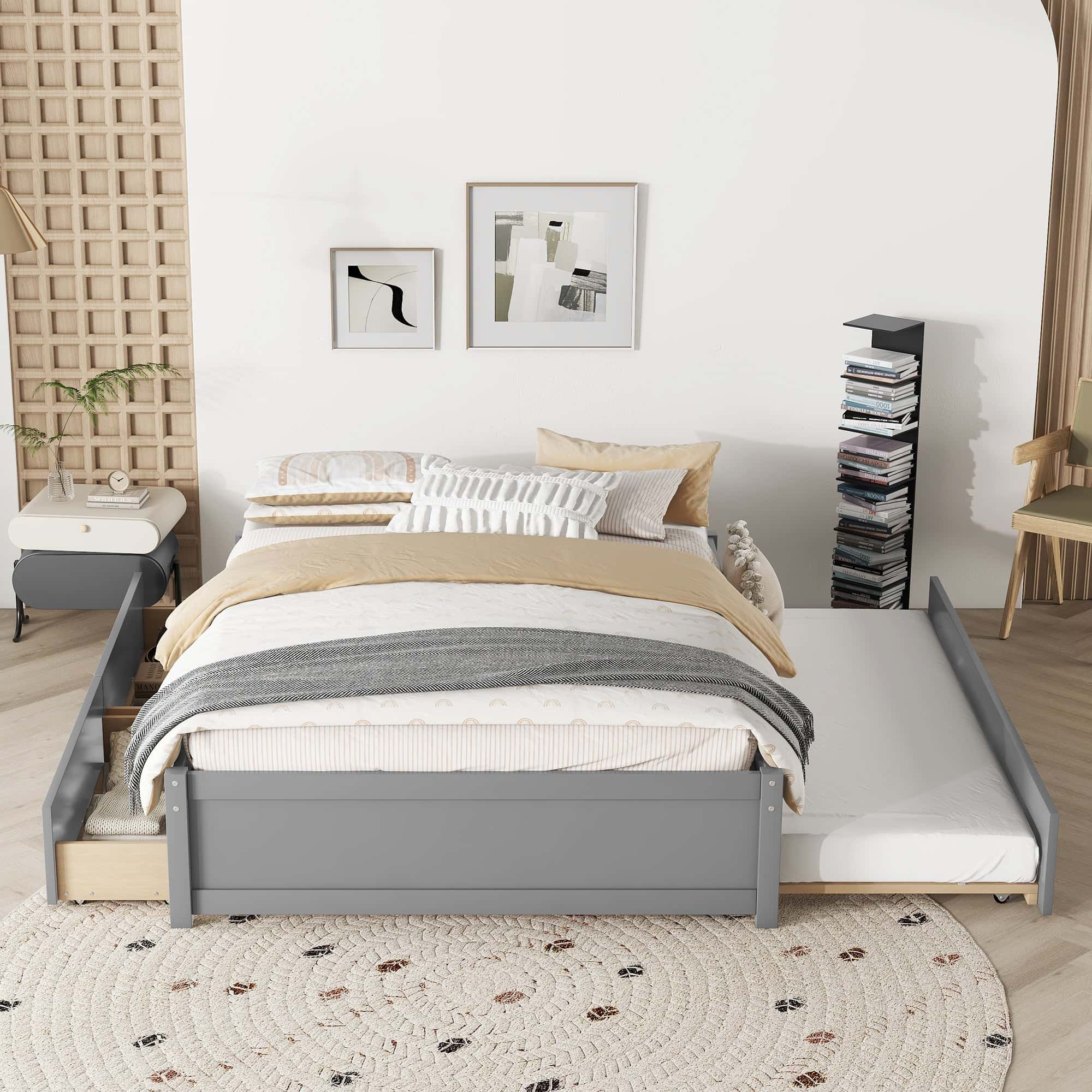 FULL BED WITH TWIN SIZE TRUNDLE AND TWO DRAWERS FOR GREY COLOR