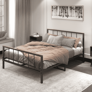- No box spring is needed: the bed frame is constructed from high-quality metal, ensuring durability and long-lasting use. The metal mattress foundation provides ample storage space underneath the bed, which is ideal for those who want to maximize their storage space. As the foundation is made of metal, it offers excellent support for the mattress, eliminating the need for a box spring.