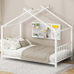 - [Safe for Kids] Crafted with metal frame, this house bed is manufactured for sound stability and security that can withstand playing without dangerous wobbling. With strong load-bearing capacity, the house bed can withstand the test of time, provide strong protection for children.
