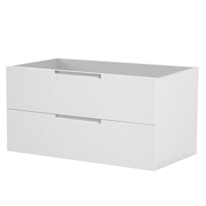 - Modern Bathroom Vanity: Stylish stripe finish paired with white sink that fits various bathroom styles. Its open back and the U-shaped drainage channel in the drawer make plumbing installation easy to save your time.