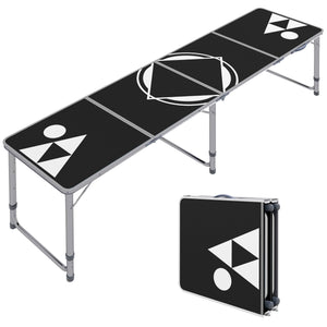 Outsunny 8ft Portable Beer Pong Table with Adjustable Legs, Folding Camping Table, Aluminum Picnic Table, for Party, Travel, BBQ, Beach, Black and White