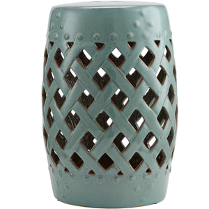 Outsunny 13" x 18" Ceramic Garden Stool with Woven Lattice Design & Glazed Strong Materials Decorative End Table, Antique Blue