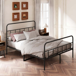 • No box spring is needed: the bed frame is constructed from high-quality metal, ensuring durability and long-lasting use. The metal mattress foundation provides ample storage space underneath the bed, which is ideal for those who want to maximize their storage space. As the foundation is made of metal, it offers excellent support for the mattress, eliminating the need for a box spring.