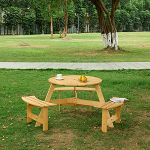 - Seating for Up to 6 People: This outdoor picnic table is designed with three built-in benches, each offering ample space for comfortable seating, accommodating a total of 6 people at once. Additionally, there is plenty of legroom provided for ultimate comfort. As a result, this outdoor wooden round picnic table is always prepared to host your outdoor gatherings.
