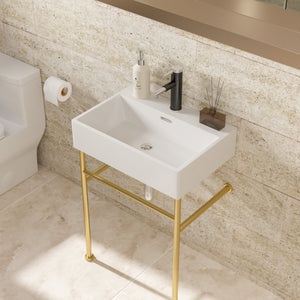 - 【Durable Material】The Console Sink is forged at a high temperature of 2900 degrees. The barthroom sink surface is smooth and easy to clean. The support is made of high-quality thick 304 stainless steel.