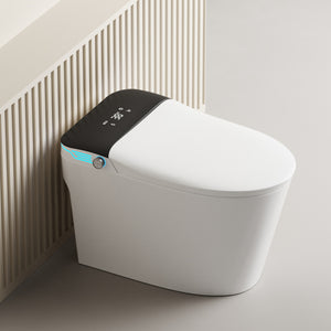 - [High-quality Ceramics]: This smart toilet is made of high-quality ceramics that have been calcined at high temperatures and glazed with micro-crystals which can keep their color unchanged for a long time. The smooth glaze and pre-wetting inner bowl prevents dirt from adhering, combined with powerful flushing to ensure ceramic bowls easier to clean with a few water consumption.