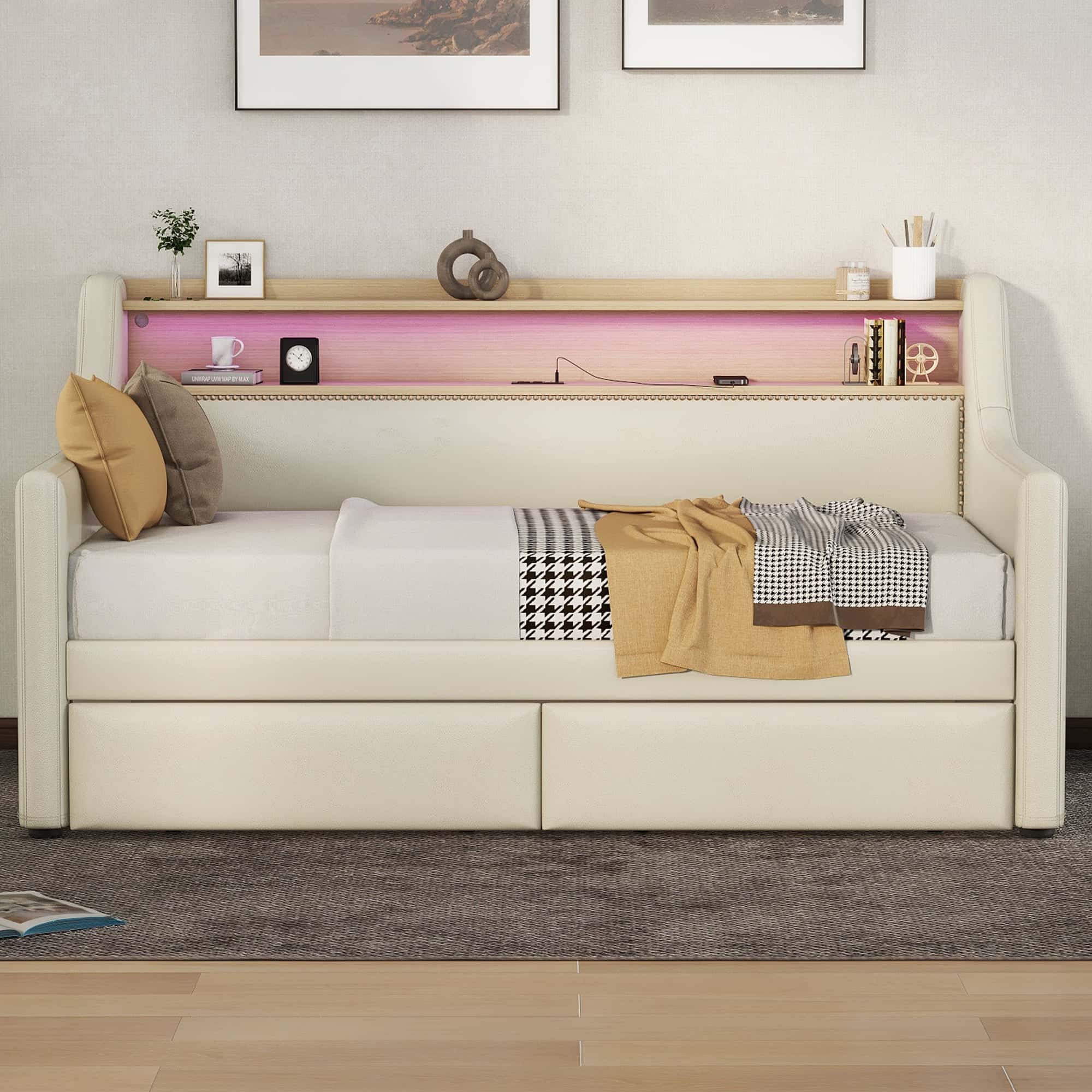 Twin size Daybed with Two Drawers, Wood Slat Support, White