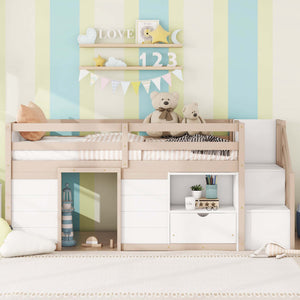 - [Multiple Functional Loft Bed]: This low loft bed is featured a built-in stair for children to have fun and develop their sense of balance and coordination. Moreover, this loft bed has a compartment and a drawer underneath the bed which takes full advantage of space to store toys, bedding, and others.