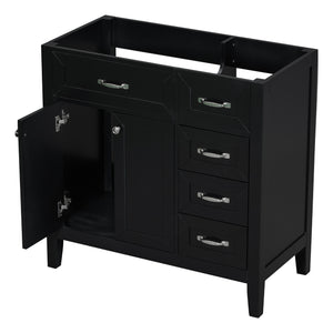 - Stylish 36" Bathroom Vanity Base Only: This 36" bathroom vanity is suitable for bathroom in any decoration style. Freestanding black vanity cabinet with silver handles complies with your bathroom facilities. The groove design on the door and drawer increases the artistry and aesthetics of the home environment. If you're looking for a simple but stylish bathroom sink vanity, our product will be a great choice to upgrade your bathroom.