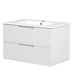 30 Inch Floating Bathroom Vanity with Ceramic Sink Combo Set, Modern Bath Storage Cabinet Vanity with Drawers Wall Mounted Vanity for Bathroom, White