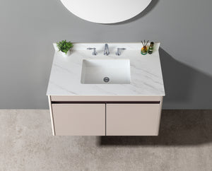 - Package Includes: vanity top with assembled rectangular ceramic sinks, 4" high backsplash. Besides, an extremely solid package - Reinforced packaging making sure a safe delivery. (Attention: Cabinet and faucet NOT INCLUDED).