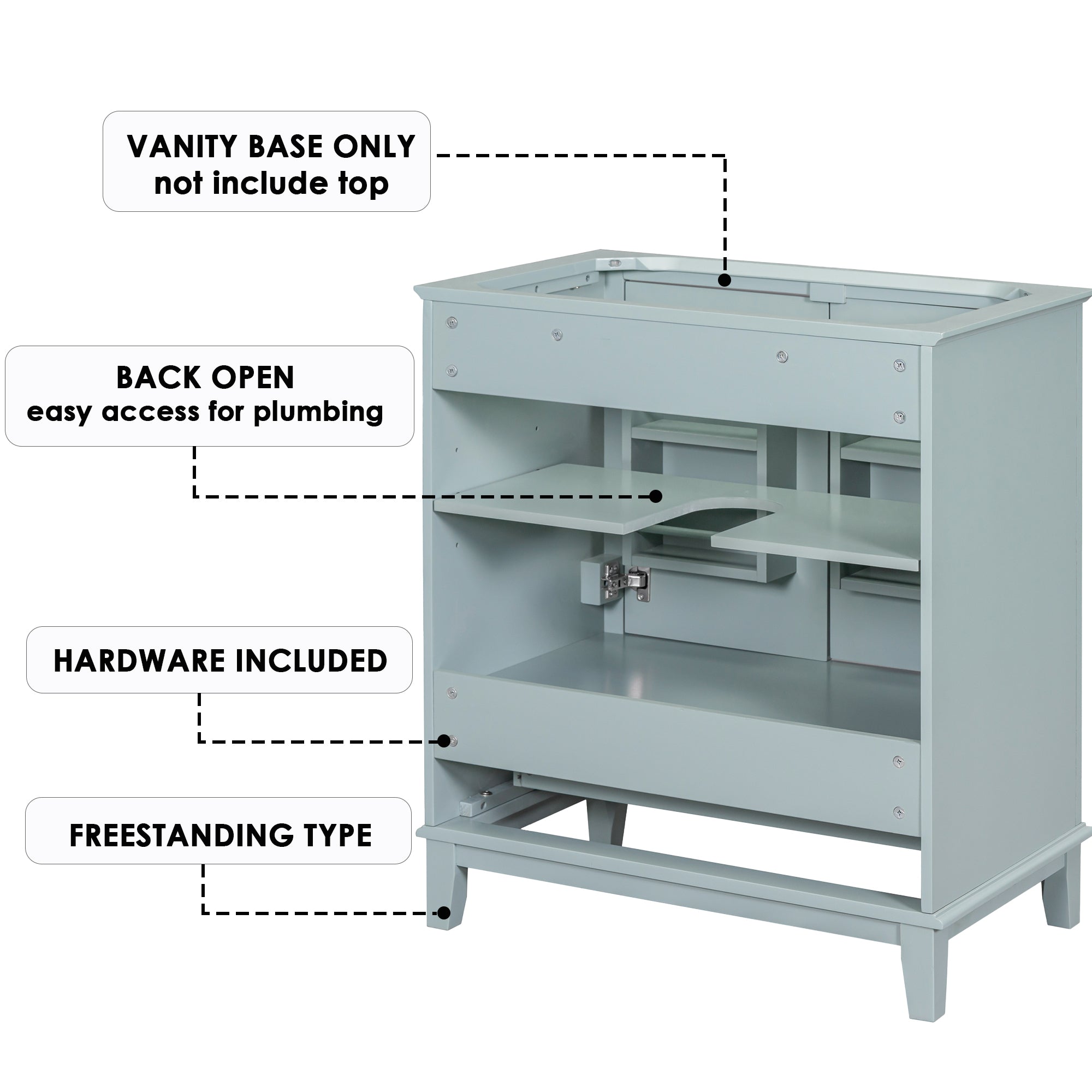 36" Bathroom Vanity Base Only, Solid Wood Frame and MDF Boards, Grey
