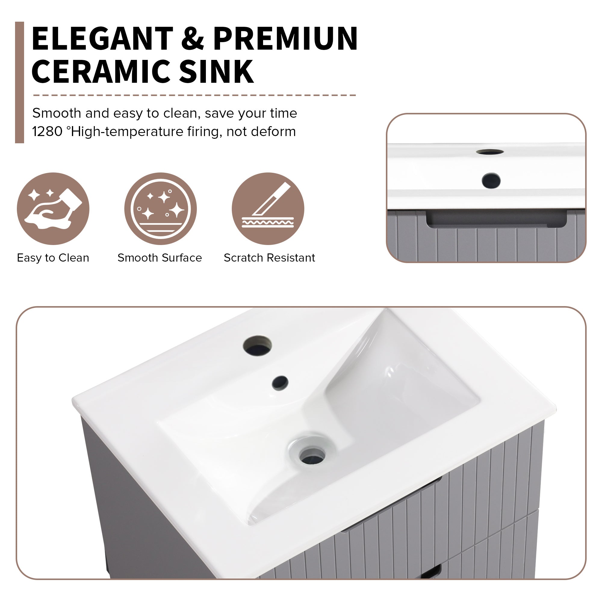 24-Inch Bathroom Vanity Cabinet with Ceramic Sink, 2 Drawers, 1 Door