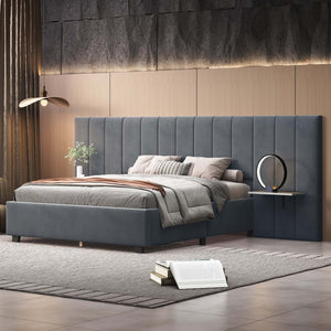 - 4. Key Features: Enjoy the ultimate in comfort with the oversized and ultra-soft headboard, providing a cozy backdrop for relaxation. Additionally, the integrated shelves on both sides of the headboard offer convenient storage for your bedside essentials, keeping them within easy reach.