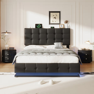 - [Modern Bed with LED] Decorated with tufted headboard design, there is beautiful LED light around the bed, you can control by Remote/APP, It offers bright glowing & vivid color. Freely change in 16 million colors, precisely dial in color temperature, brightness & timing settings, features Strobe, Gradient, Jump at different speeds & even has light pulse in sync with music & game to create various ambiances.