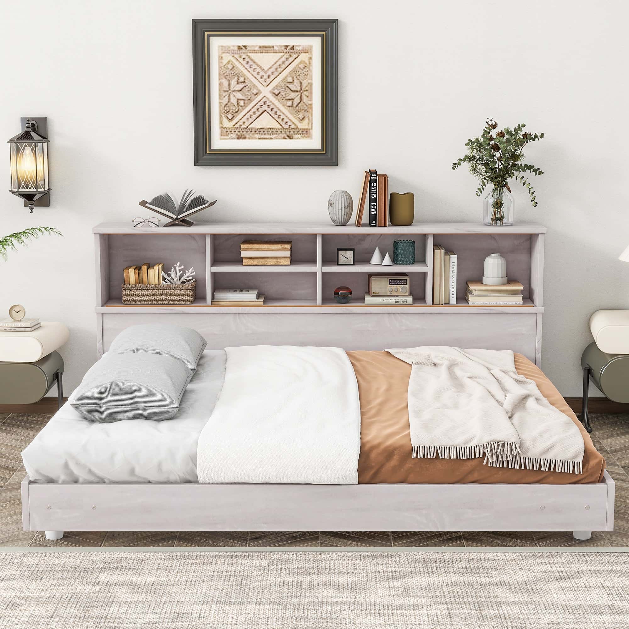 Full Size Daybed Frame with Storage Bookcases,White Oak