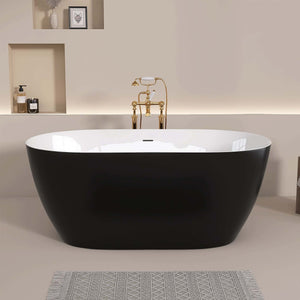- [PREMIUM QUALITY CONSTRUCTION]: 100% glossy white interior + matte black outside acrylic bathtub reinforced with fiberglass for long-lasting durability. Environmentally friendly material, non-toxic, non-cracking, high gloss, and durable finish. Easy to clean, and resistant to a wide range of household chemicals and cosmetic products.