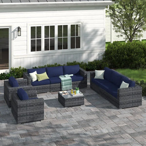 8-Person Wicker Seating Group with Sunbrella Cushions – Fully Assembled