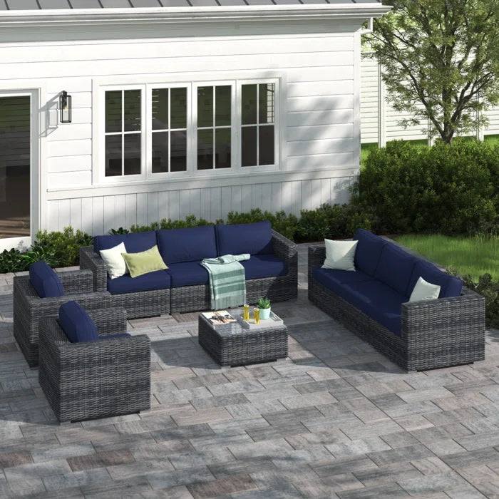 8-Person Wicker Seating Group with Sunbrella Cushions – Fully Assembled