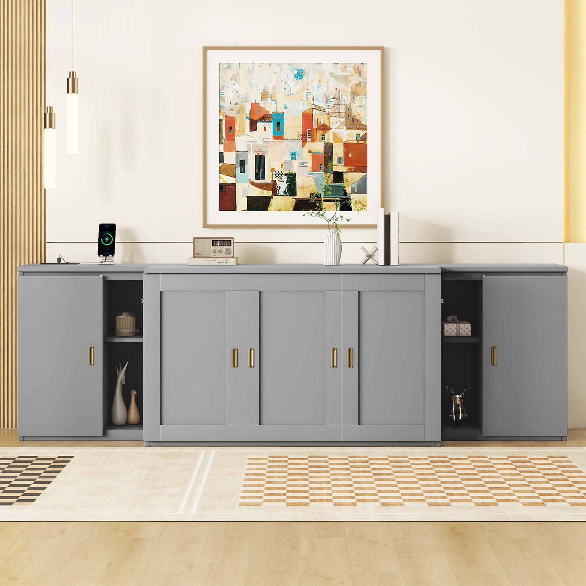 Full Size Murphy Bed with Shelves, Cabinets and USB Ports,Gray