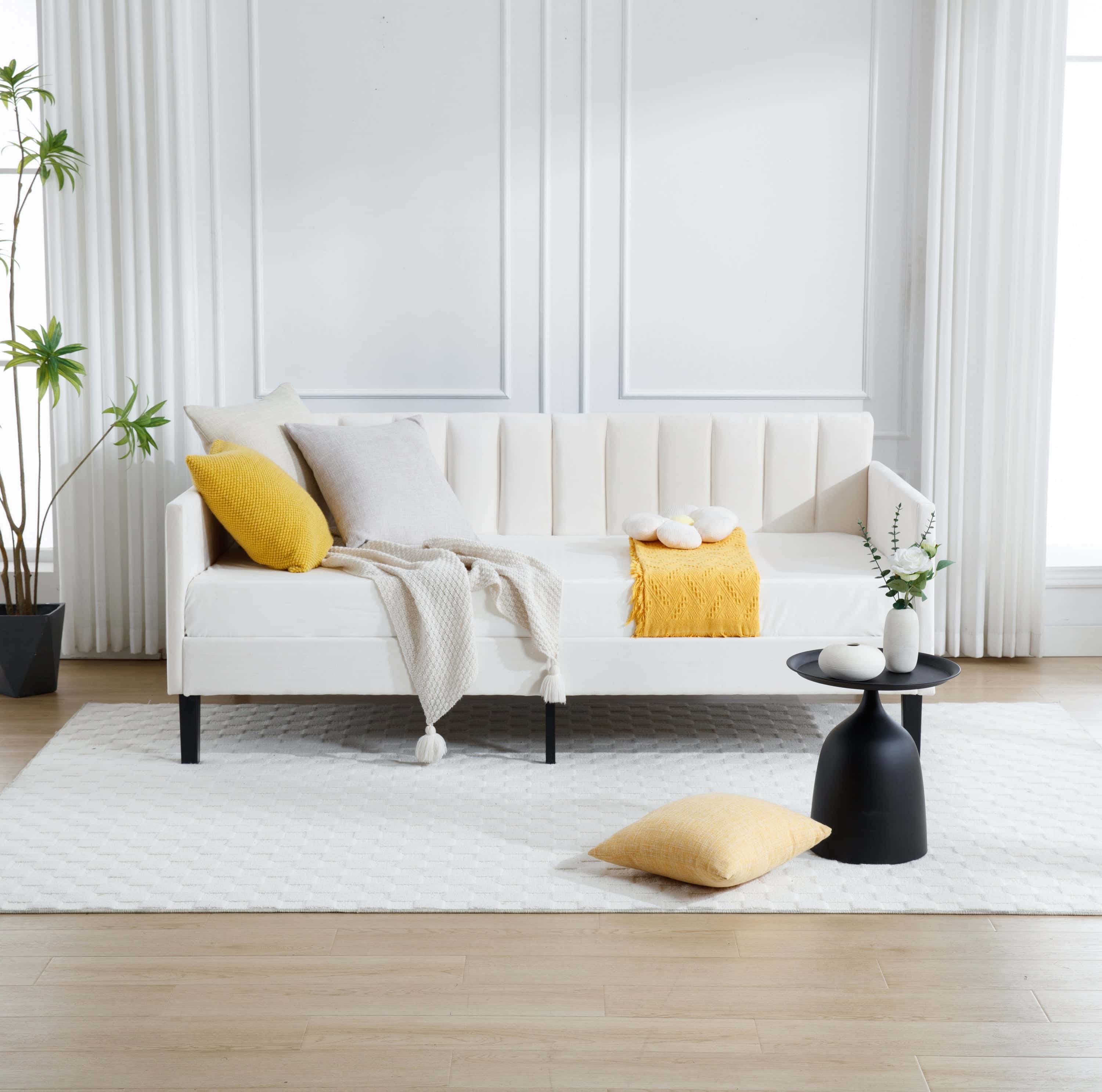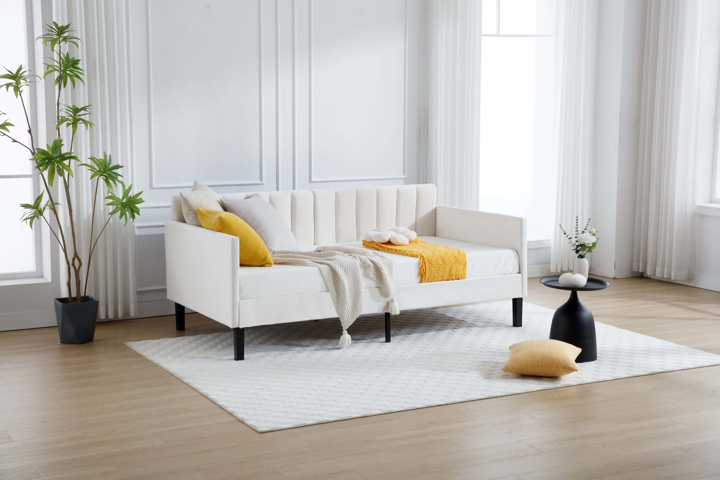 Twin Size Wood bed with House-shaped Headboard Floor bed with Fences,White