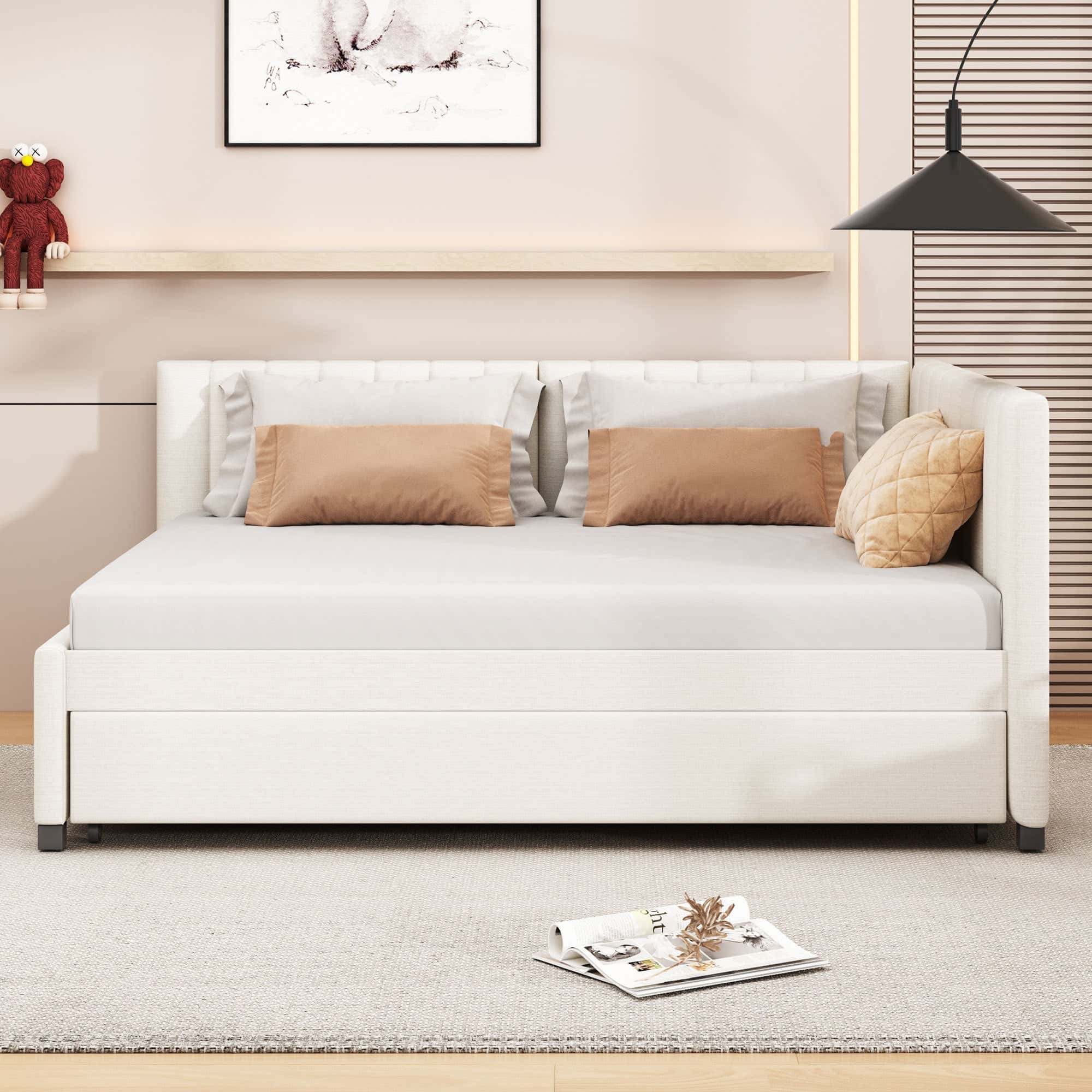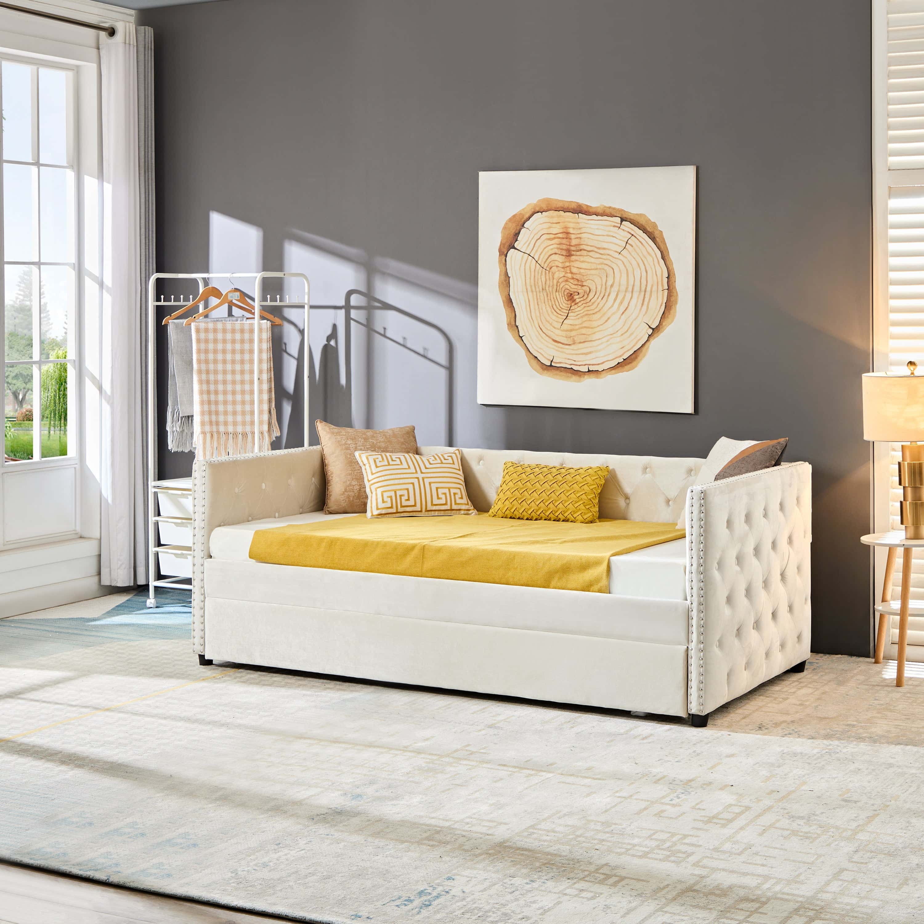 Twin Size Murphy Bed Wall Bed with Sofa,with Shelves,White
