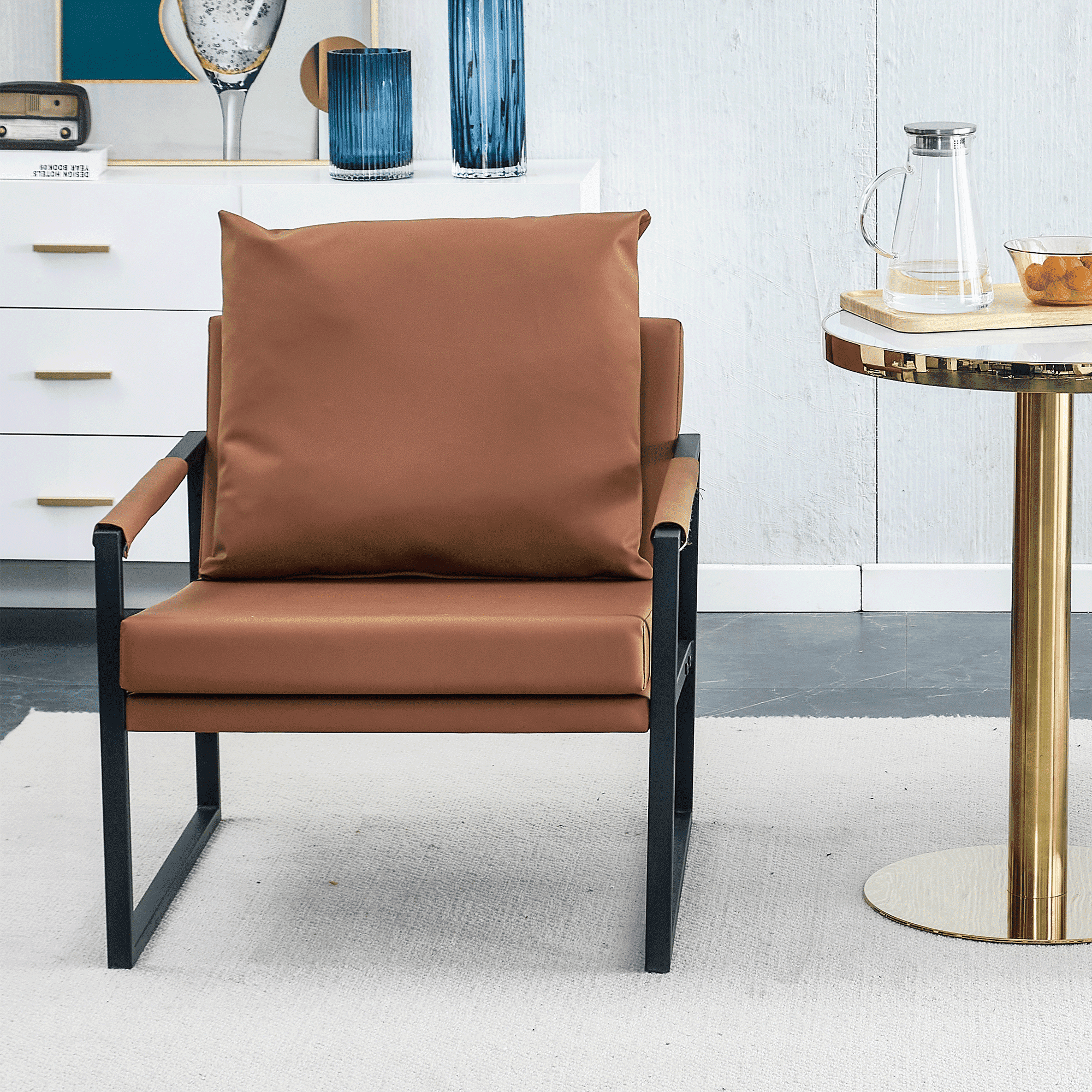 Leatehr Feeling Brown Convertible Folding Modern sofa Bed