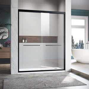Transform your bathroom with this sleek and adjustable semi-frameless sliding shower door. Designed to fit 56-60" W x 72" H openings, it features thick, certified clear tempered glass for enhanced durability and safety. The high-quality 304 stainless steel handles add a touch of modern elegance, while the matte black finish provides a bold and contemporary look. Easy to install and smooth to operate, this shower door offers a stylish solution that blends functionality with design. Perfect for creating a luxurious shower experience.