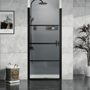 - Material: Tempered frosted glass with black silk print grid style, aluminum pivoting profiles and frames