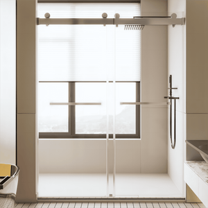 - DOUBLE BYPASS SLIDING: This frameless shower door can be adjusted from 56 to 60 in width by cutting, maximize your bathroom layout of our double sliding door system, designed for easy access while using minimal space for smooth, unobstructed movement. The door body is light and flexible, with a long mechanical life, and provides smooth opening and closing.