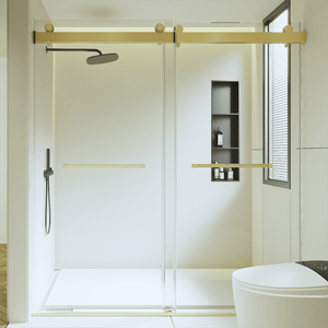 - DOUBLE SLIIDNG WITH SOFT-CLOSE: This semi-frameless shower door can be adjusted to 68 and 72 in width by cutting, maximize your bathroom layout of our double sliding door system, designed for easy access while using minimal space for smooth, unobstructed movement. The door body is light and flexible, with a long mechanical life, and provides smooth opening and closing.