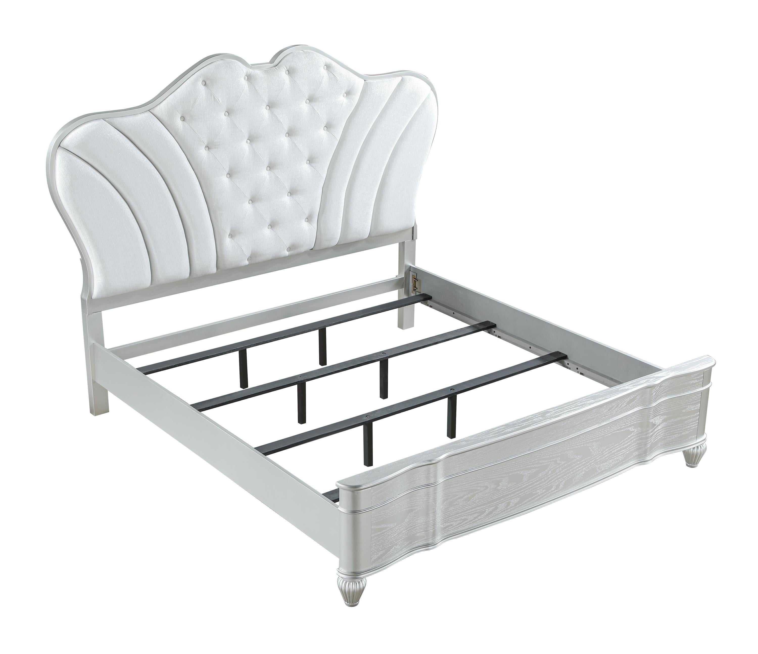 Landmark Traditional Style Upholstered Button-Tufted Queen Bed Made with Wood in Silver
