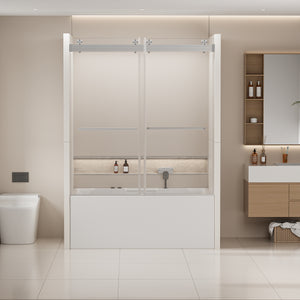 - 5/16" Tempered Glass: ANSI-certified clear tempered glass with polished edges offers exceptional durability and safety, resisting damage from soap and lime scale while maintaining a glossy, pristine appearance over time.