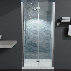 Maximize space and style with these 36-37” wide by 72” high bi-fold semi-frameless shower doors, featuring clear tempered glass and a polished chrome finish. The bi-fold design allows for easy access and efficient use of space, making it an ideal choice for smaller bathrooms. With its sleek, modern look, these doors combine functionality and sophistication, offering a contemporary update to any bathroom while maintaining durability and smooth operation.
