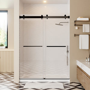 - Safety Tempered Glass: The double sliding shower door is made of 3/8 inch (10 mm) thick tempered glass with ANSI Z79.1 certified and SGCC certified for high impact resistance and high thermal stability to ensure durability and safety.