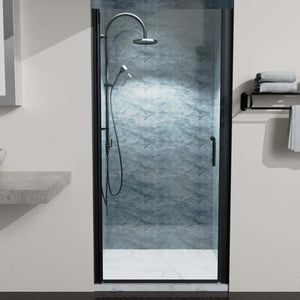 Transform your bathroom with this 36-37” wide by 72” high semi-frameless pivot shower door. Featuring clear tempered glass and a bold matte black finish, this door brings a modern touch to your shower space. The pivot design allows for smooth, easy access, while the semi-frameless style enhances the overall elegance of your bathroom. Perfect for a contemporary look, this door combines durability, functionality, and style, making it a stunning addition to any bathroom decor.