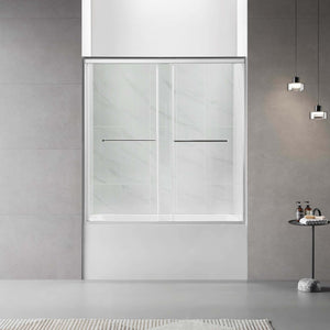- [Safety and Security]: The double sliding shower door is made of ANSI certified 1/4" (6 mm) thick clear tempered glass.Aluminum frame, 304 stainless steel hardware to ensure superior quality and corrosion resistance