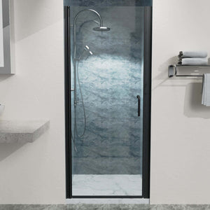 Elevate your shower experience with this stylish 32"-33” wide by 72” high semi-frameless pivot shower door. Featuring a modern matte black finish and clear glass, this door beautifully balances durability and elegance. The semi-frameless design creates an open and spacious feel, while the pivot functionality ensures easy access. Perfect for adding a touch of sophistication to your bathroom, this shower door is an ideal blend of form and function.