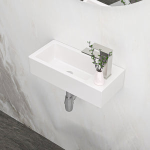 • Installation Type - Wall Mounted floating bathroom sink, more usable space . White wall mounted Sink Dimension: 14.57L" x 7.28"W x 3.54"H. Fit 1-3/4" Center Drain Hole.