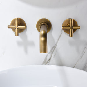- This wall tub faucet with two classical cross design handles for effortless water flow and temperature control.This wall mounted Bronze bathroom faucet will be one of the most eye-catching creations in your bathroom.