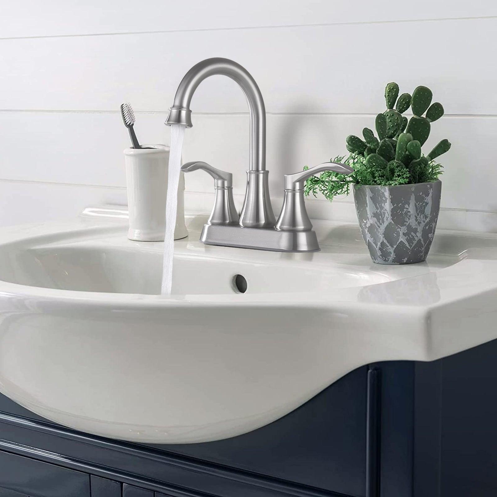 2-Handle Bathroom Sink Faucet with Drain, Brushed Nickel