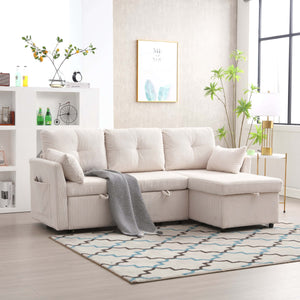 - Corduroy Reversible Sleeper Sectional Sofa with Storage Chaise