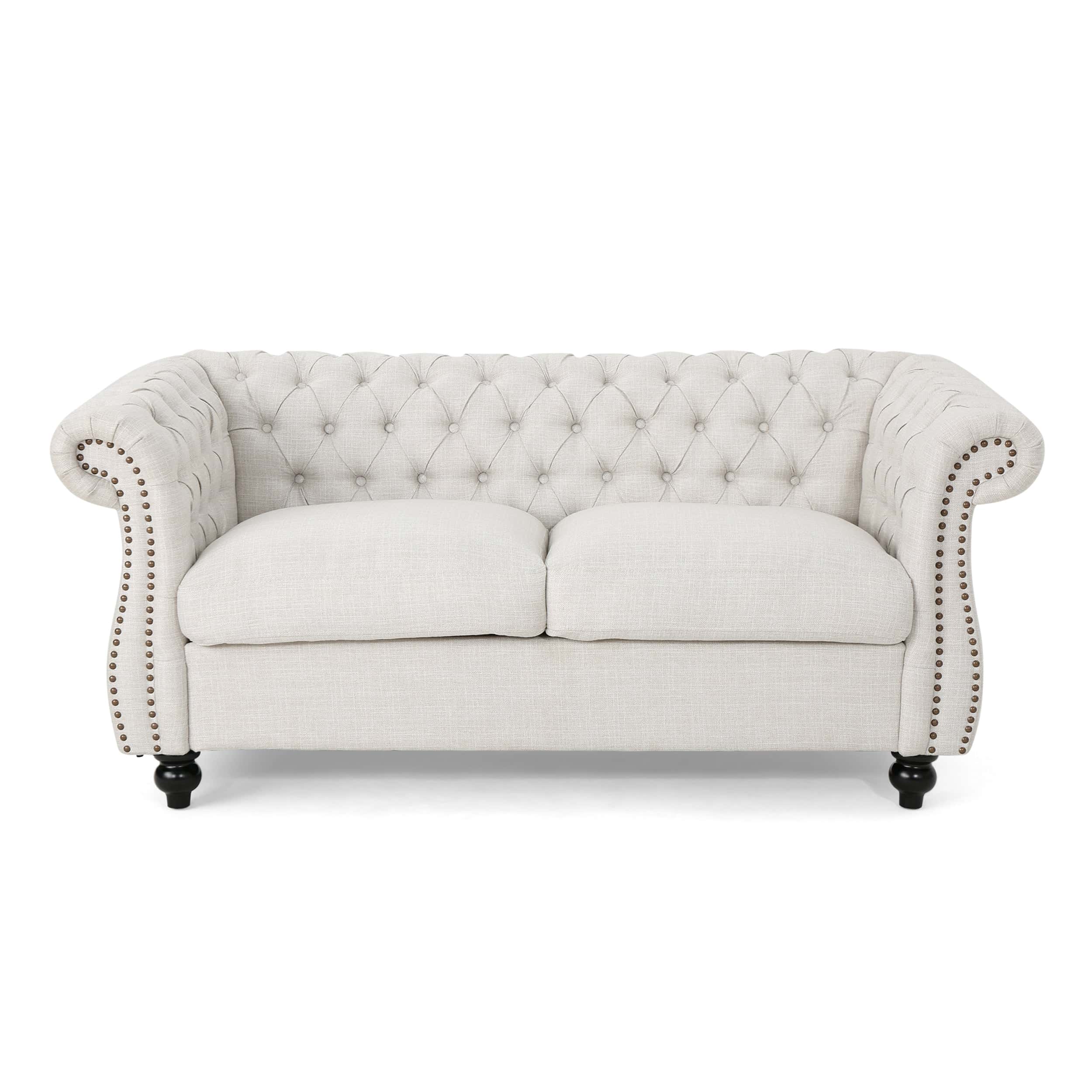 Living Room Sofa,3-Seater Sofa , with Copper Nail on Arms ,Three Pillow,White