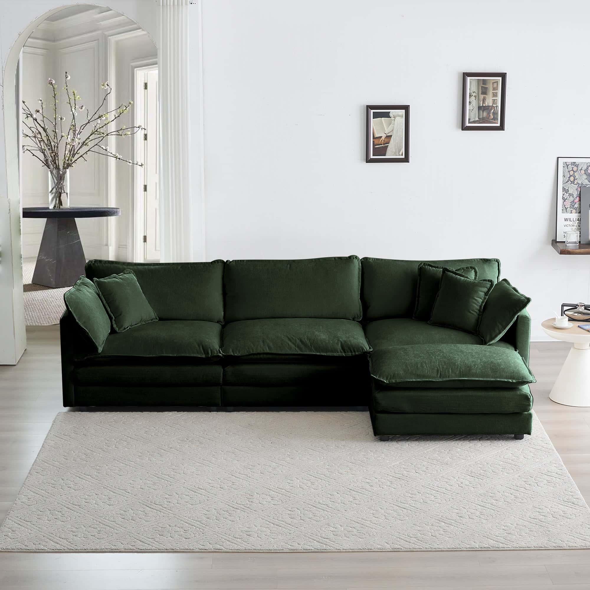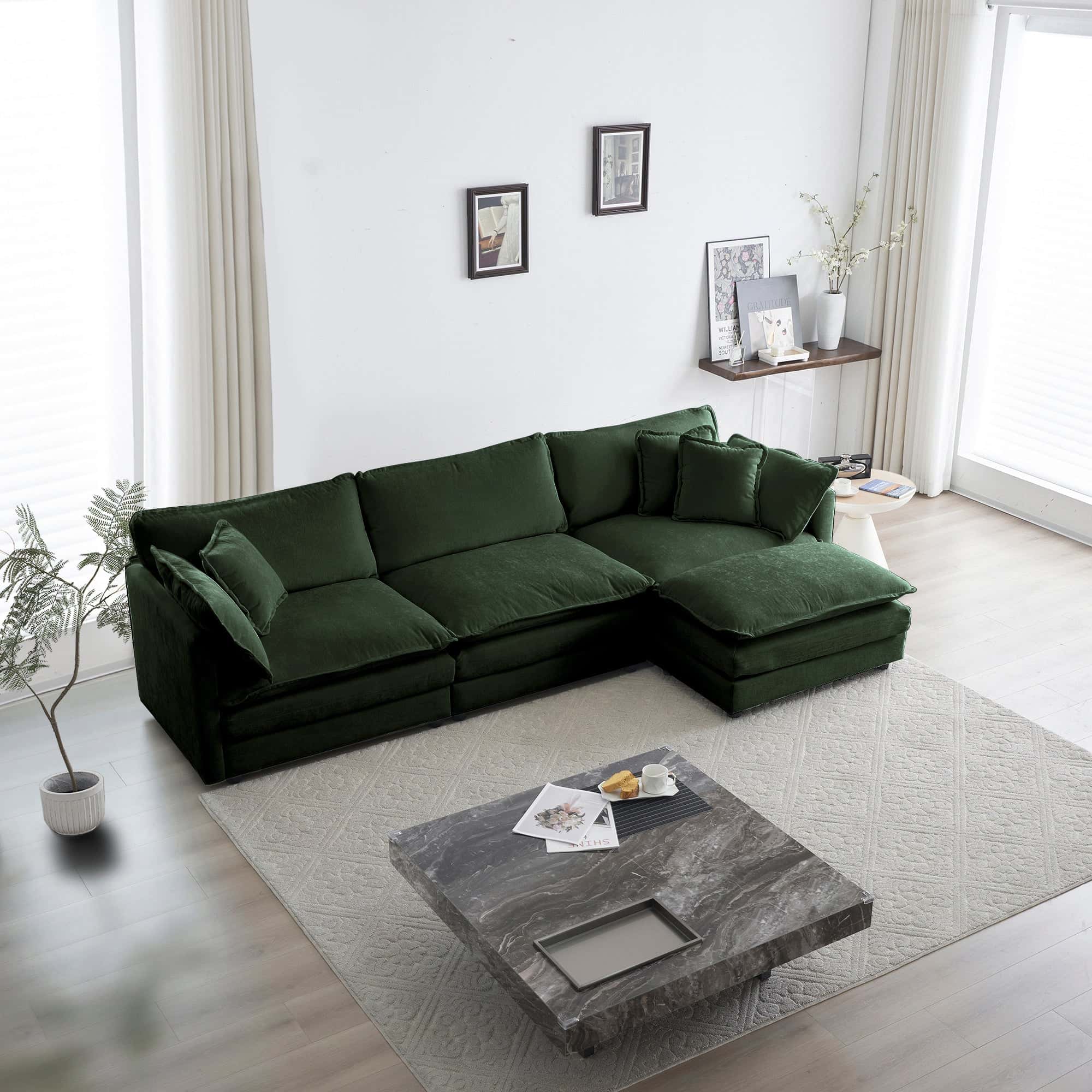 L Shape Modular Soft Fabric Sofa Filled with Down (Beige)