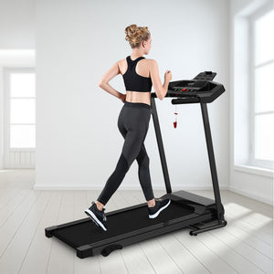 - [COMFORTABLE RUNNING EXPERIENCE]: The running belt (14.96''x41.33 '') of the treadmill for home is made of 5-layer non-slip textured material, extremely flexible and comfortable. 2 rubbers and 6 latex of the foldable treadmill form the scientific shock absorper system so as to provide maximum protection to joints and ankles. 2.5HP motor provides quiet moreover stable operation, offering speeds of 0.5-7.5 MPH and 220lb weight capacity, suitable for most people.