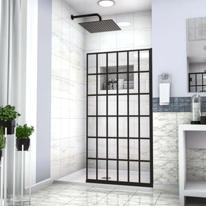 • This shower door is 38 in. W x 72 in. H; Configuration consists of a Single Glass Panel and; Frameless walk-in shower design.