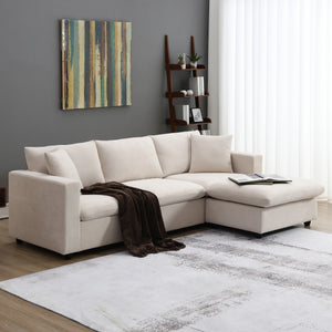 [VIDEO provided] [New] 100.4*64.6" Modern Sectional Sofa,L-shaped Couch Set with 2 Free pillows,4-seat Polyester Fabric Couch Set with Convertible Ottoman for Living Room, Apartment, Office,4 Colors