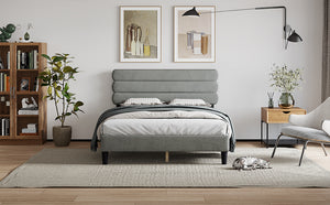 - Elegant Design: Full-size bed frame boasts an exquisite design, featuring a headboard crafted from high-quality linen fabric and enveloped in high elastic memory foam. The cushioned side rails provide exceptional comfort for relaxation, while the specially designed Velcro slats make assembly a breeze, effectively eliminating noise