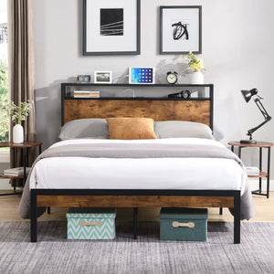 - Metal Platform Bed Frame with Wooden Headboard and Footboardstrong steel metal structure for durability & stability, quiet, noise free and large bearing capacity