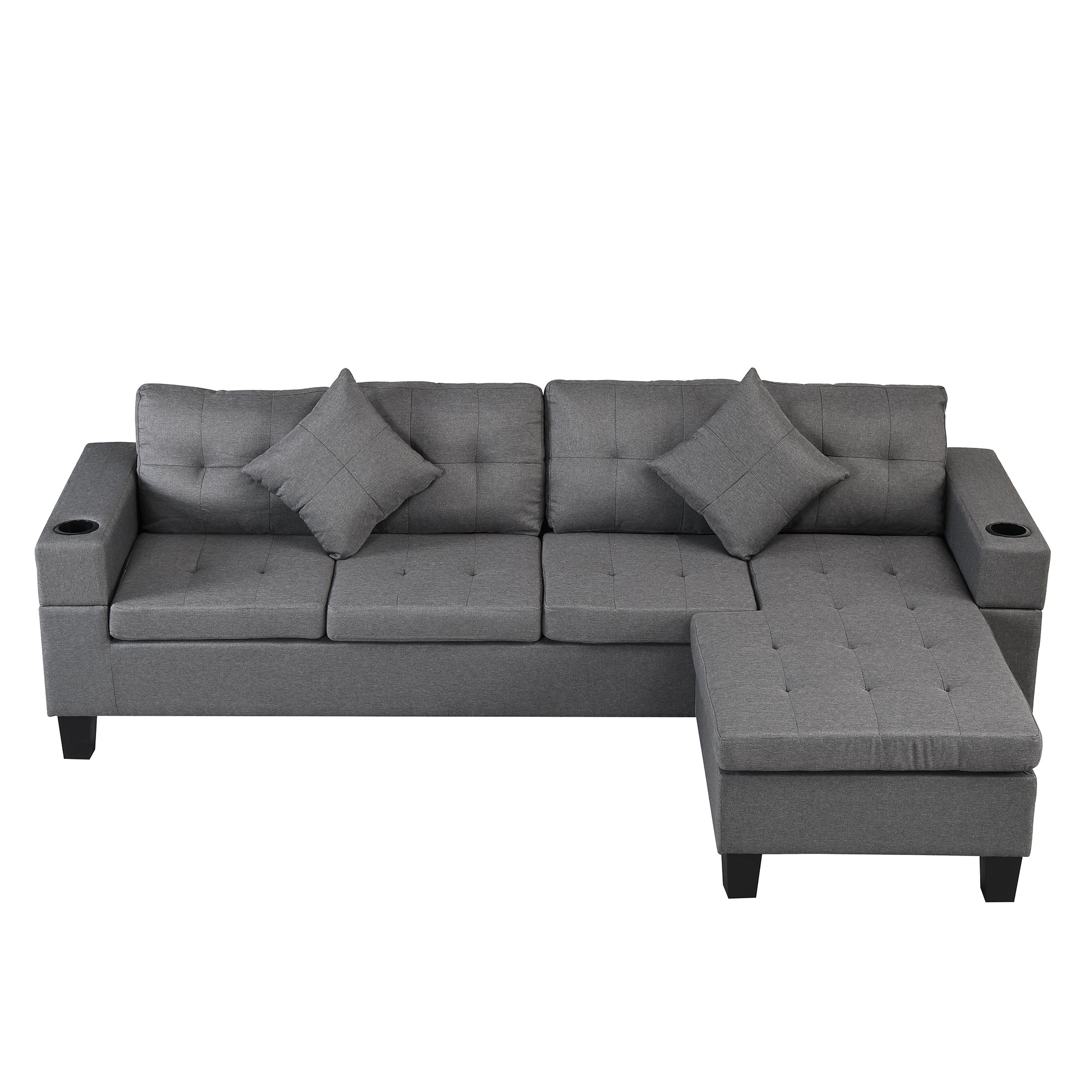 Santiago 96" Dark Gray Linen Sectional Sofa with Right Facing Chaise